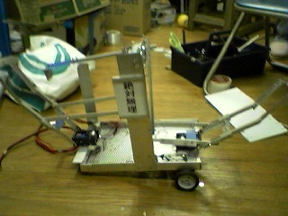 少しずつ人が減っていって、段々とスペースが出来てきたところで本格的に改造開始。後ろにとってつけたアームの存在意義を考えて、やっぱり「俺のリロード(略)」をしようと思って、補助レールを作成。昨日うまく行かなかったところを踏まえ、友人からのアドバイスを交えつつ改良。